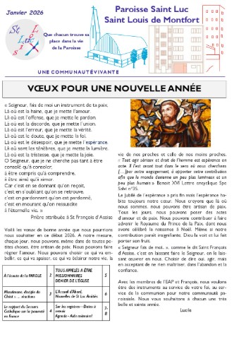 Bulletin paroissial Le Bulletin Paroissial de février 2026 est disponible, cliquer ici … Pour recevoir tous les mois le nouveau bulletin par mail, communiquez votre adresse mail en cliquant ici (si ce n’est pas déjà fait)